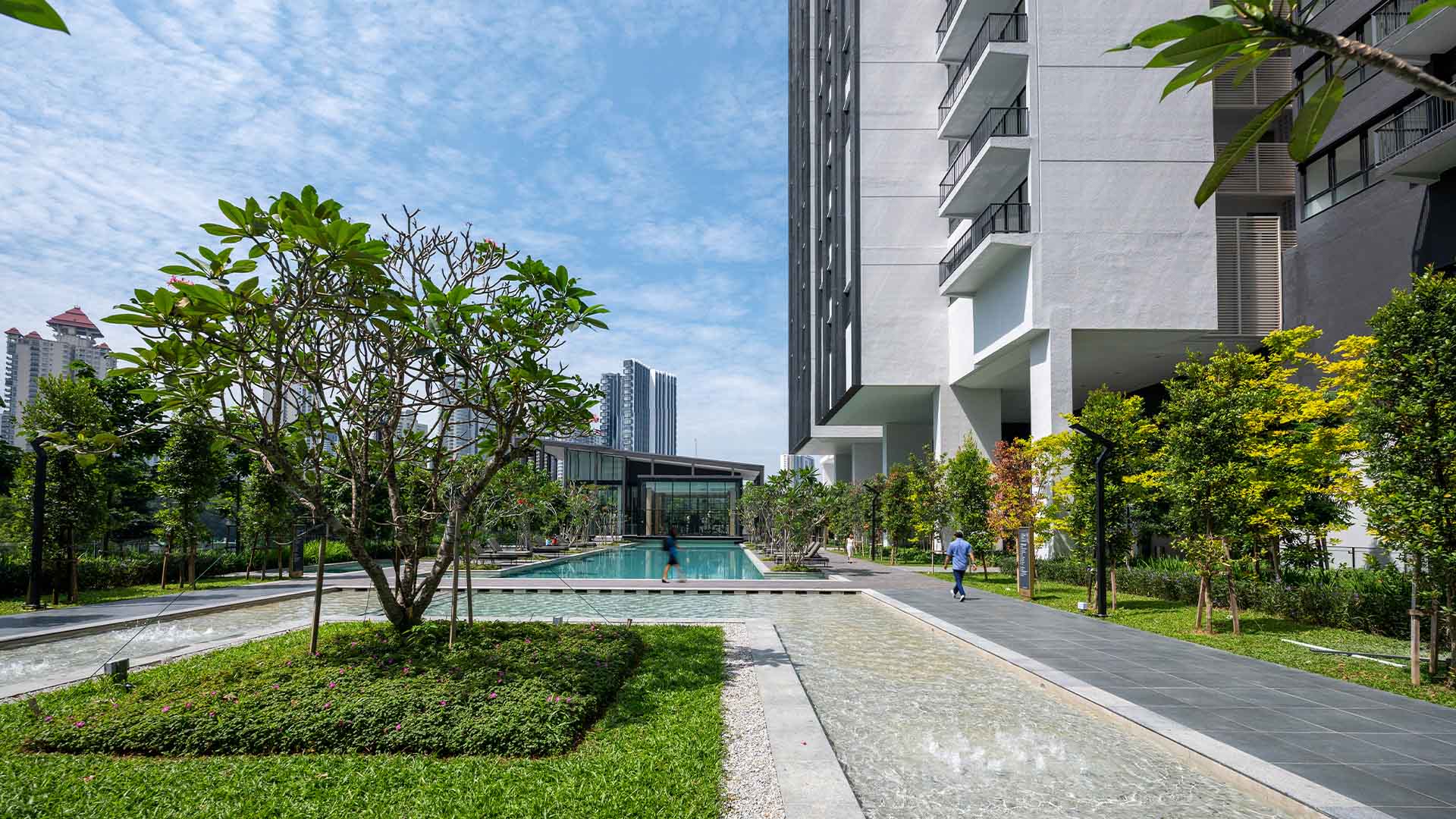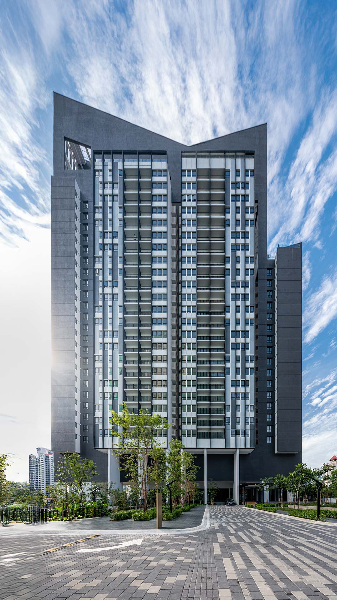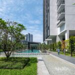 Set within a 4.55-acre freehold site, the development integrates a sloping terrain with a sub-basement to optimize land use and enhance the landscape. Emphasising spacious living and seamless indoor-outdoor connections, Alix features large units, tropical courts, and generous green spaces. Guided by principles of sustainability and adaptability, the design blends built form with nature to create a distinctive residential experience.