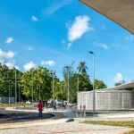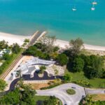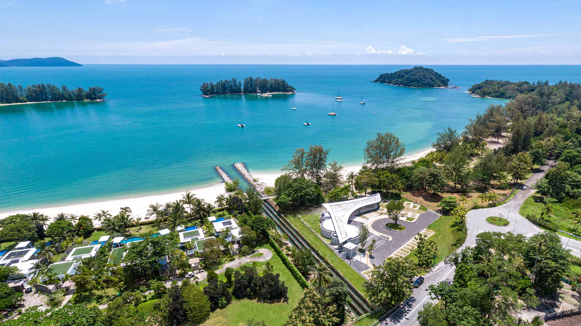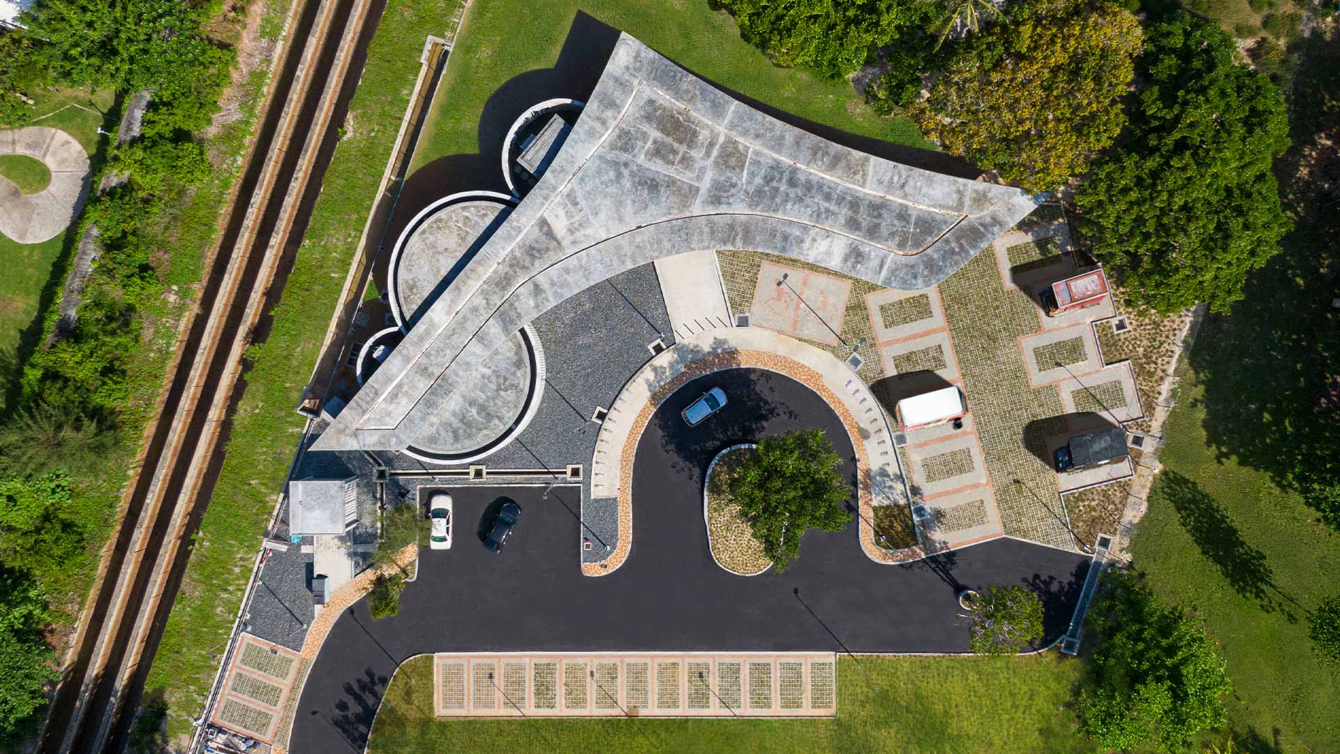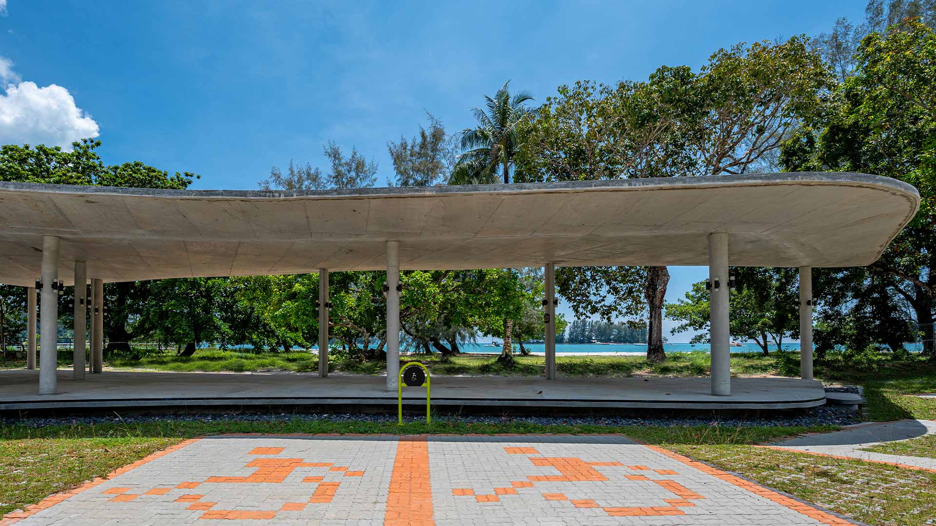 Hentian Cambrian’s pavilion in Langkawi stands as an architectural landmark, its sweeping, wing-like roof embodying the island’s majestic eagles. Crafted from cast-in-place concrete, the cantilevered roof extends outward with striking fluidity, appearing almost weightless as it hovers above slender supporting columns. This structural and sculptural feat reinforces the themes of flight and openness, seamlessly blending with the coastal landscape of Pantai Kok.